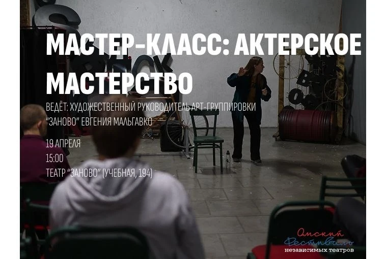 В 15:00 начнётся мастер-класс по актёрскому мастерству.Свободно. Театр «Заново» (Учебная, 194). В Омске продолжается фестиваль независимых театров «Театр в городе!» (с 29 марта по 29 апреля). Фестиваль собрал частные театральные коллективы, чтобы показать, насколько ярким, дерзким и живым может быть современный театр.Одно из событий фестиваля — этот мастер-класс, где любой желающий может попробовать себя на сцене. Никакой подготовки не нужно, вход свободный. 0+