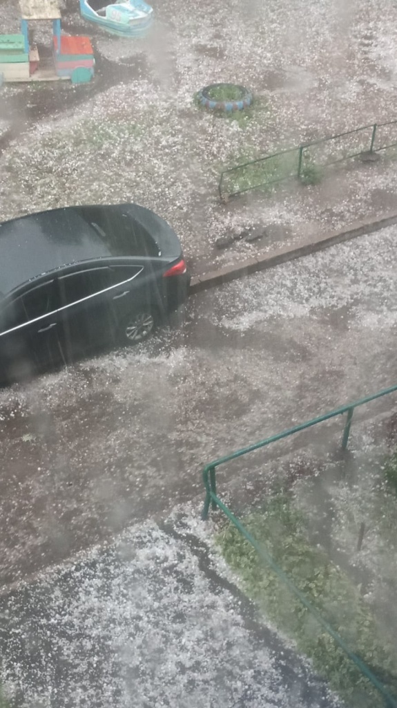 Сегодня, 27 июня, на Омск обрушился ливень с градом размером с перепелиное яйцо. Об этом сообщают наши читатели.